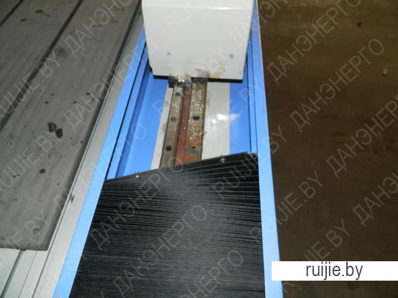 Все направляющие на станке надежно закрыты шторками, что не позволяет каменной стружки и СОЖ попадать на них. Тем самым повышая срок службы станка.