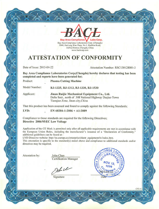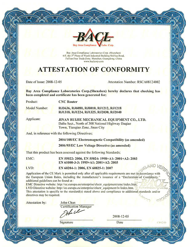 Учреждение, выдающее Сертефикаты: Bay Area Compliance Laboratories Corp.