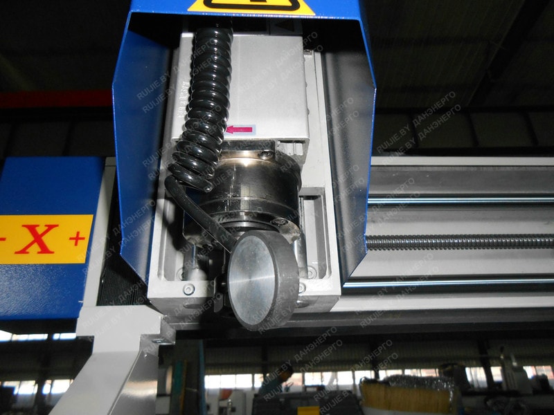 Индивидуальный привод перемещения портала, суппорта и шпинделя по осям X, Y и Z обеспечивает высокую точность перемещения и считывания размера, что позволяет обрабатывать изделия с высокой скоростью и точностью. Все двигатели синхронизированы через центральный процессор